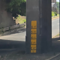 Old railroad bridges carry the Main Line over CR 504 in Hawthorne. I wonder what that height measurement is for. Flooding?