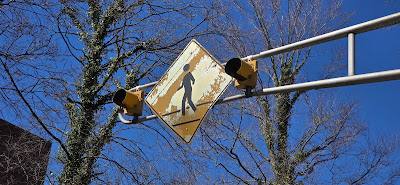 A more conventional and new crosswalk sign.