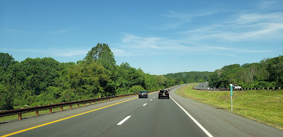 This telephone tower tries to disguise itself as a tree, but it clearly isn't! This is at the former Madison Hill Picnic Area just before Exit 135.