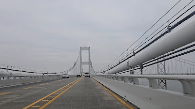 The suspension bridge spans of the Chesapeake Bay Bridge.