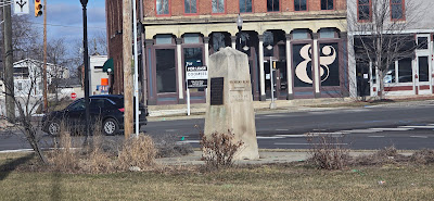 A monument for Historic US 40 at the I-65/I-70 interchange.